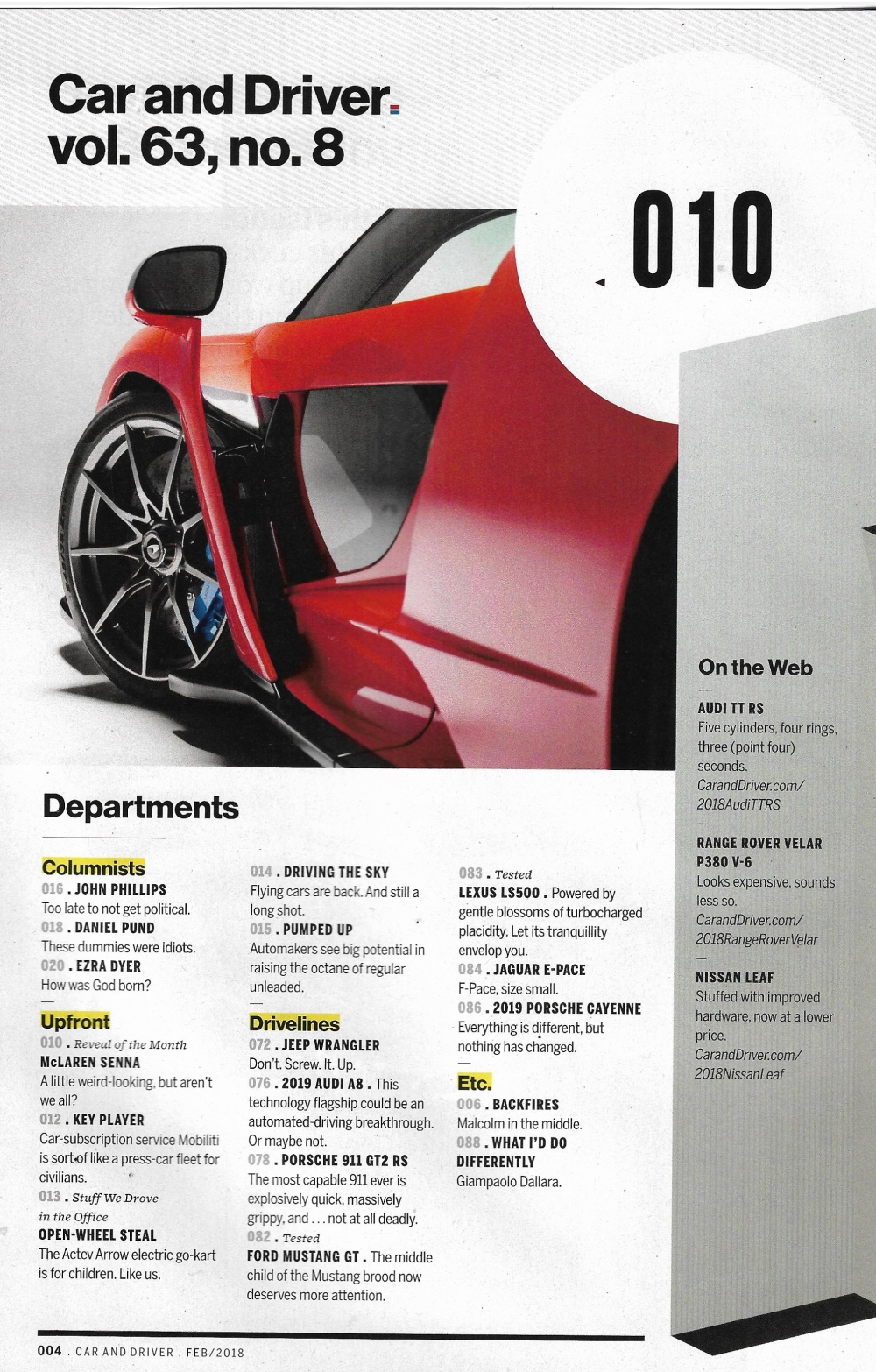 CAR & DRIVER 2018 FEB - FORD GT, AUDI A5 SPORTBACK, BMW 430i xDRIVE, STINGER