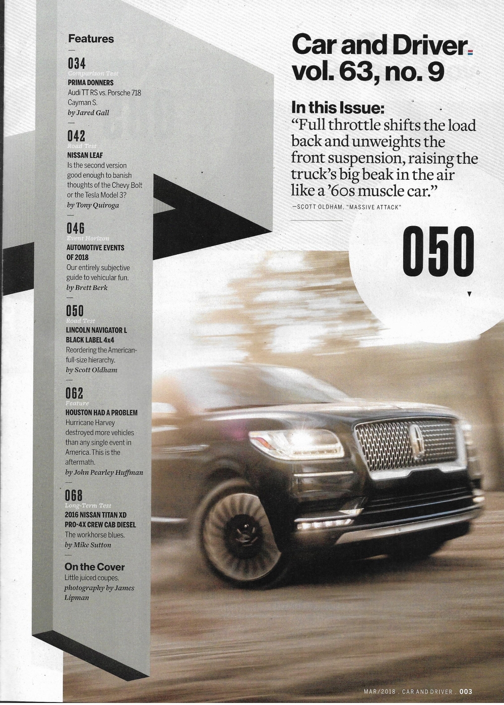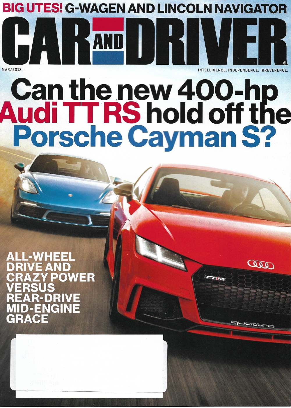 Reviews CAR & DRIVER 2018 MAR - AUDI TT RS v CAYMAN S, NAVIGATOR L BLACK LABEL 4X4