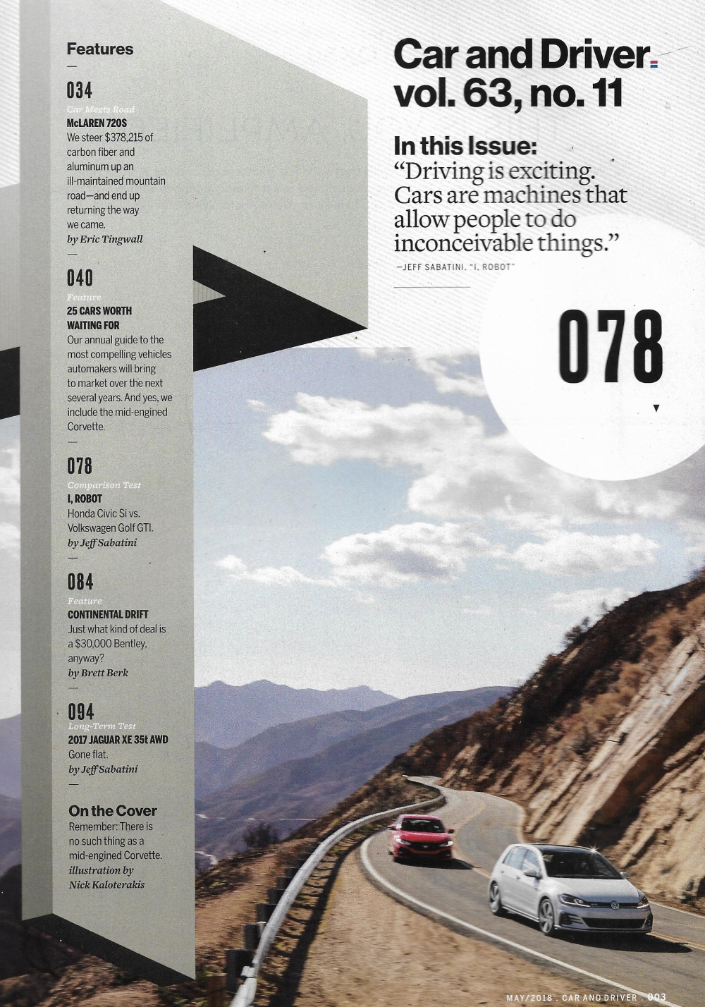 Reviews CAR & DRIVER 2018 MAY - MID ENGINE VETTE, MCLAREN 720S, CIVIC Si vs GOLF GTI
