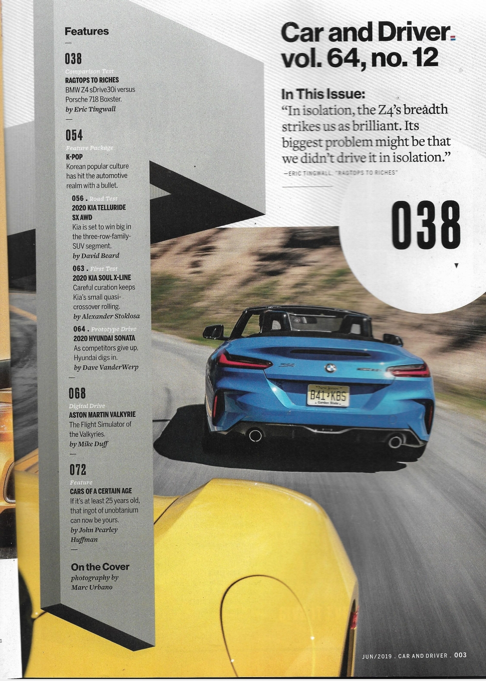 Reviews CAR & DRIVER 2019 JUNE - BOXSTER OR Z4, JEEP CONCEPTS, KIA TELLURIDE SX AWD
