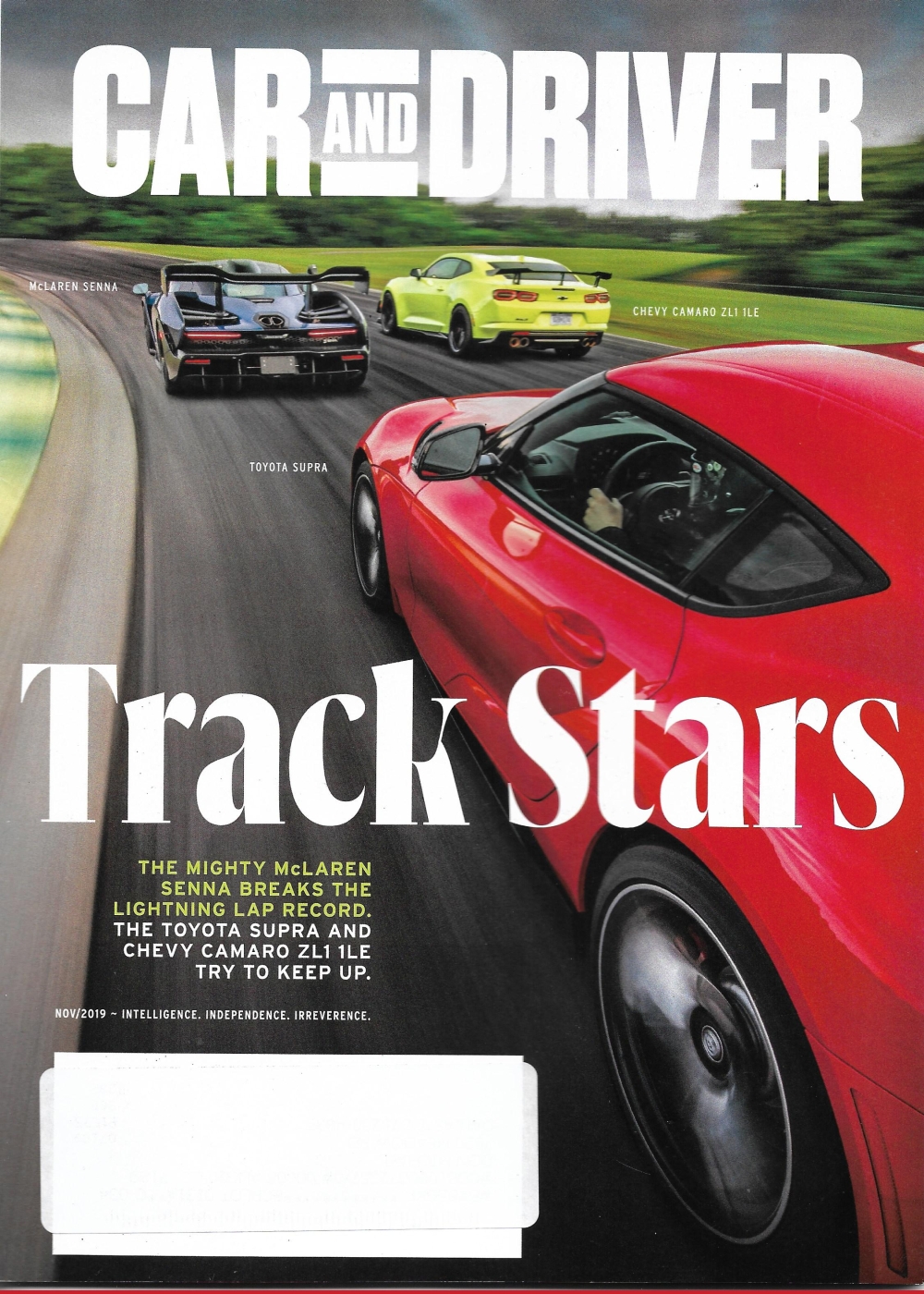 CAR & DRIVER 2019 NOV - MCLAREN SENNA, SUPRA, CAMARO ZL1 1LE, SPYDER, CARRERA