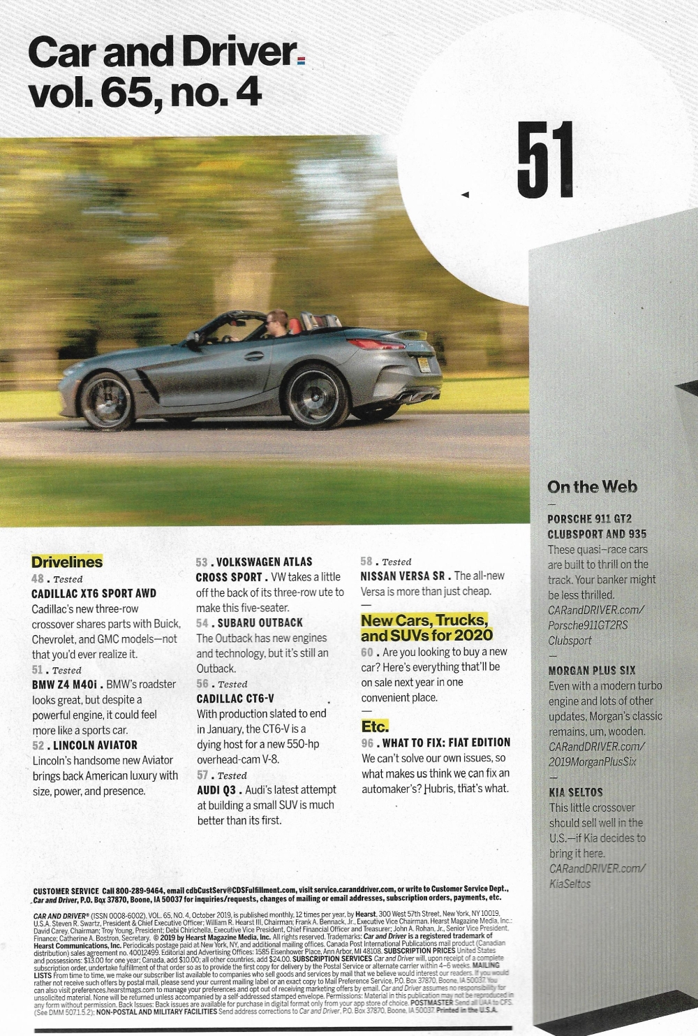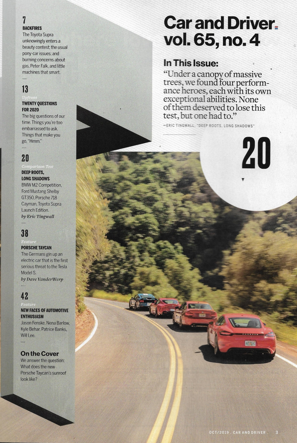 Reviews CAR & DRIVER 2019 OCT - PORSCHE TAYCAN, SUPRA v BMW M2 v MUSTANG GT350, CAYMAN