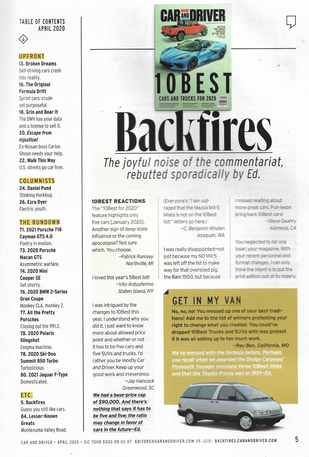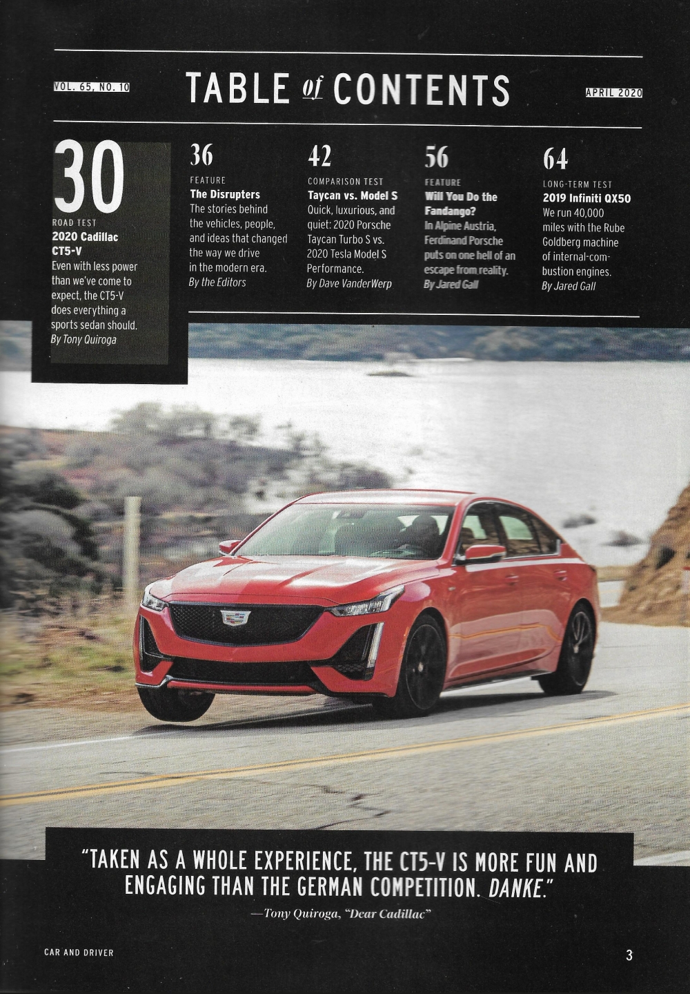 CAR & DRIVER 2020 APR - TESLA MODEL S v PORSCHE TAYCAN TURBO S, CAYMAN GTS 4.0