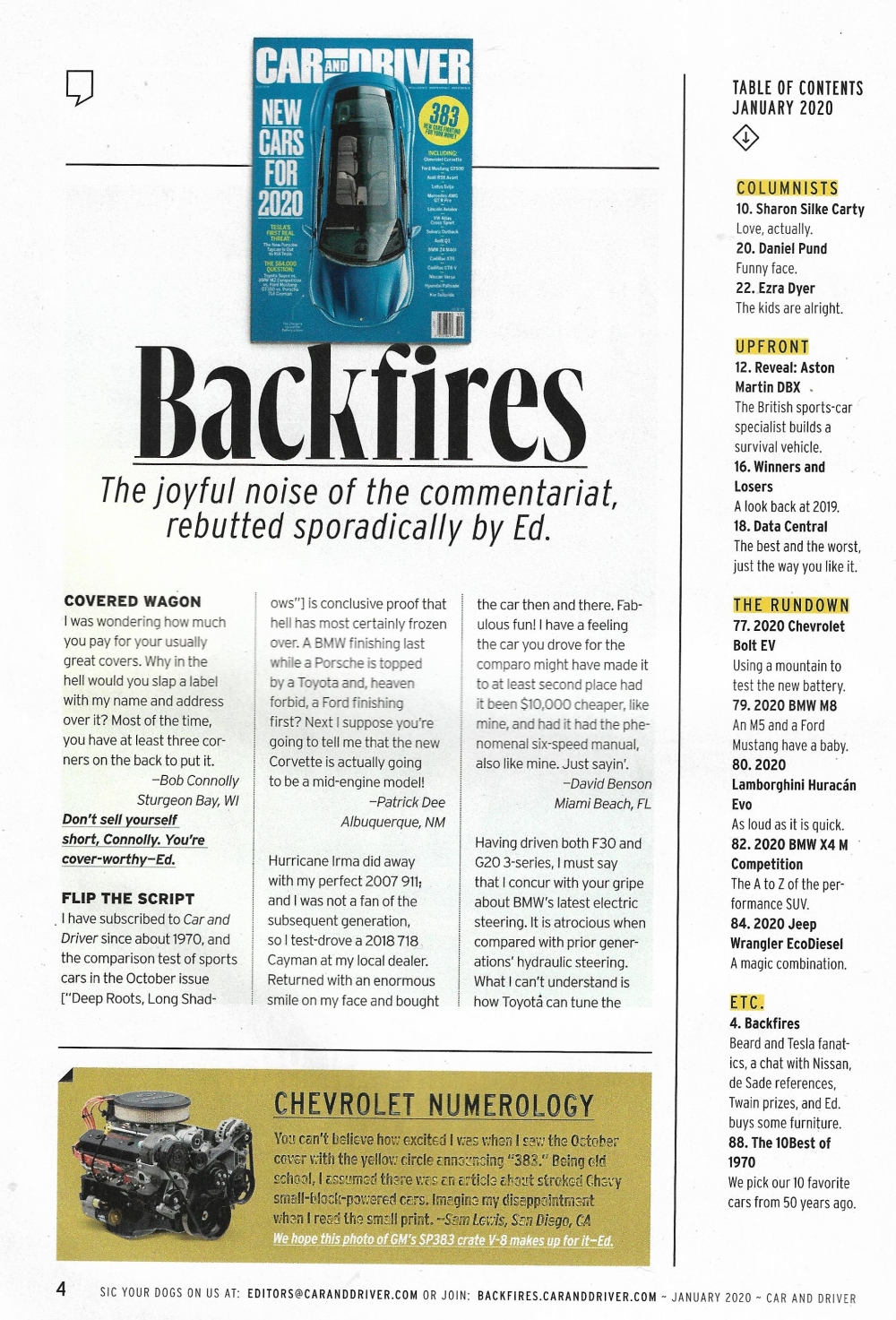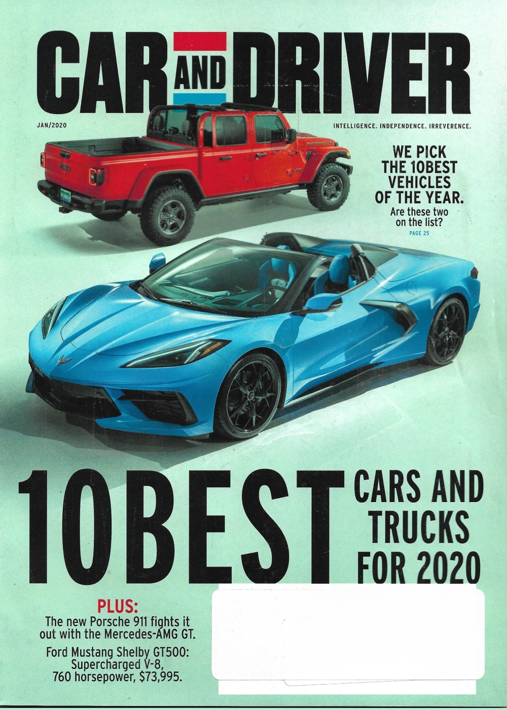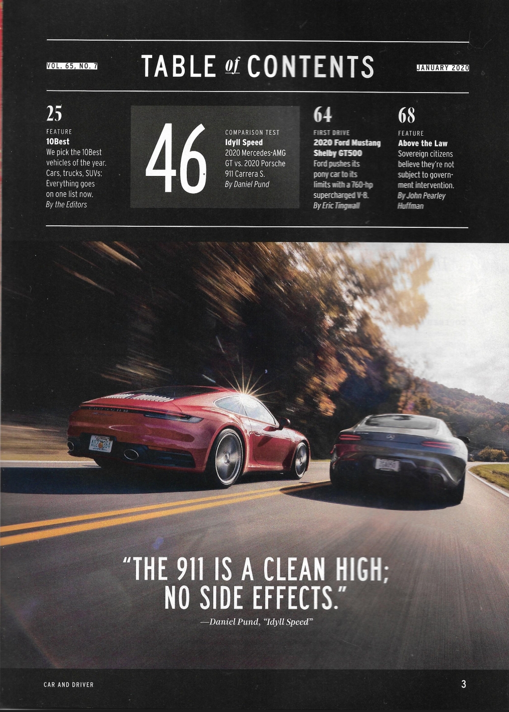 Reviews CAR & DRIVER 2020 JAN - 10 BEST, PORSCHE 911 v MERCEDES-AMG GT, SHELBY GT500