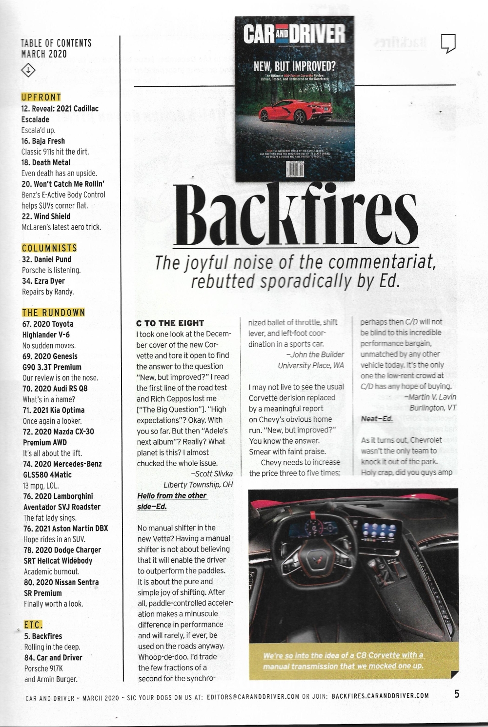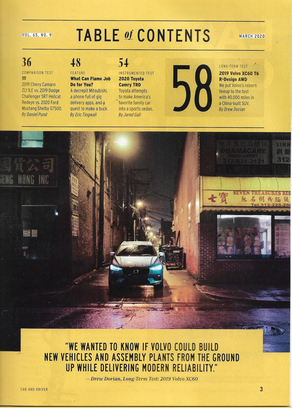 Reviews CAR & DRIVER 2020 MAR - FORD v CHEVY v DODGE, CAMRY TRD, VOLVO XC60 T6,CAMARO