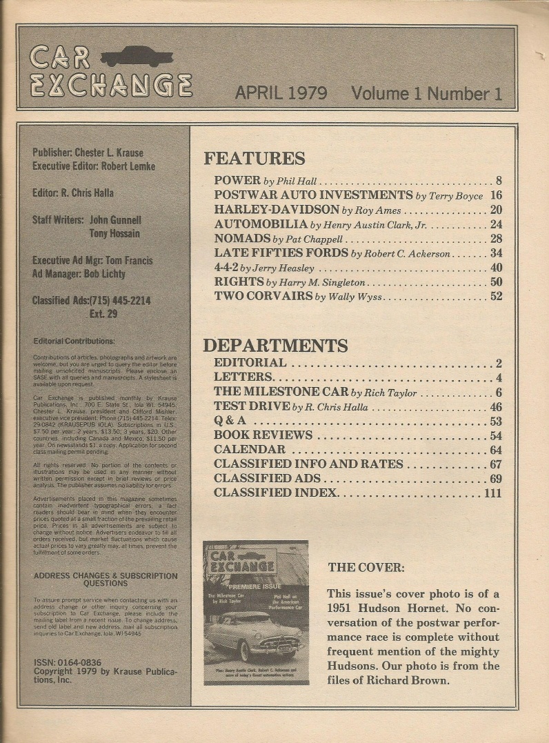 Reviews CAR EXCHANGE 1979 APR - PREMIERE ISSUE - NOMADS, HARLEY-DAVIDSON, '57 BEL AIR