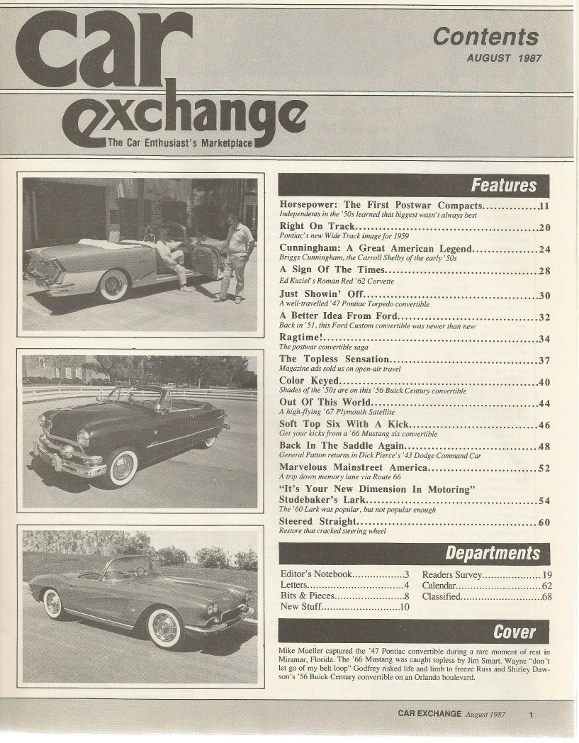 Reviews CAR EXCHANGE 1987 AUG - CUNNINGHAM, '66 MUSTANG, LARK, '62 CORVETTE, '51 FORD
