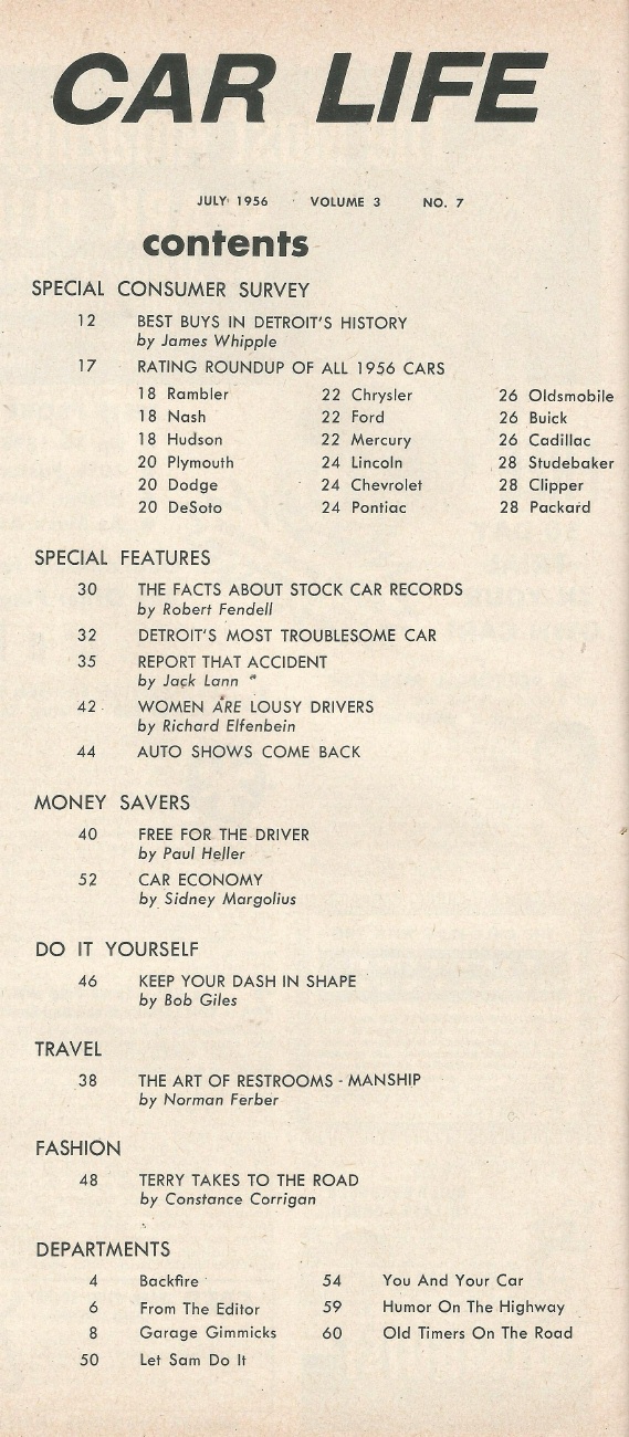 Reviews CAR LIFE 1956 JULY - NEW CARS, WORST CARS, WOMAN DRIVERS