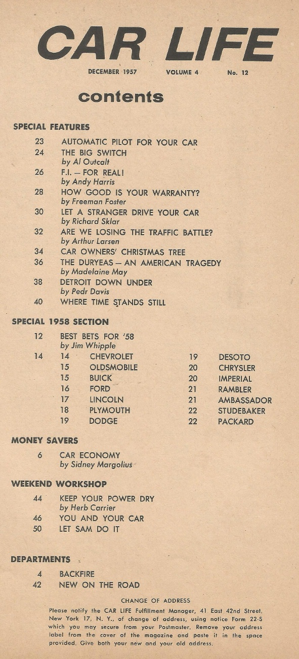 Reviews CAR LIFE 1957 DEC - NEW CARS, FUEL INJECTION COPMARISON, DURYEA*