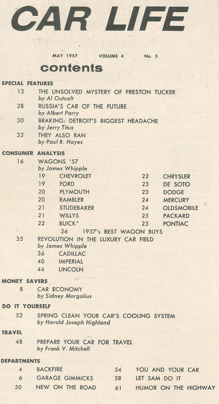 Reviews CAR LIFE 1957 MAY - PRESTON TUCKER, WAGONS, LUXURY TESTS*