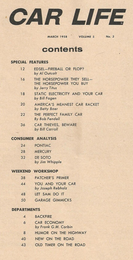 Reviews CAR LIFE 1958 MAR - NEW EDSEL, PONTIAC, MERCURY & DESOTO TESTED