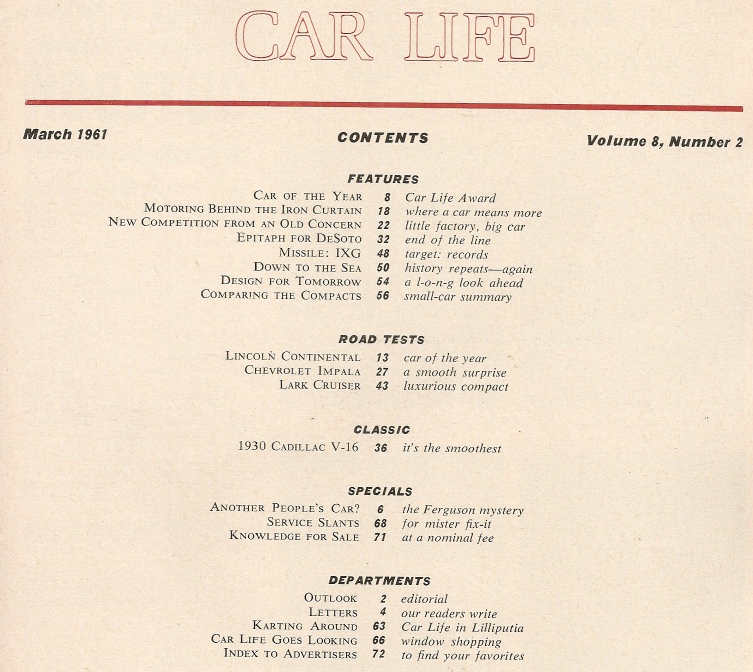 Reviews CAR LIFE 1961 MAR - LINCOLN-DESOTO SPCLS, ROVER-IMPALA TEST, 30 CADDY V16, IXG