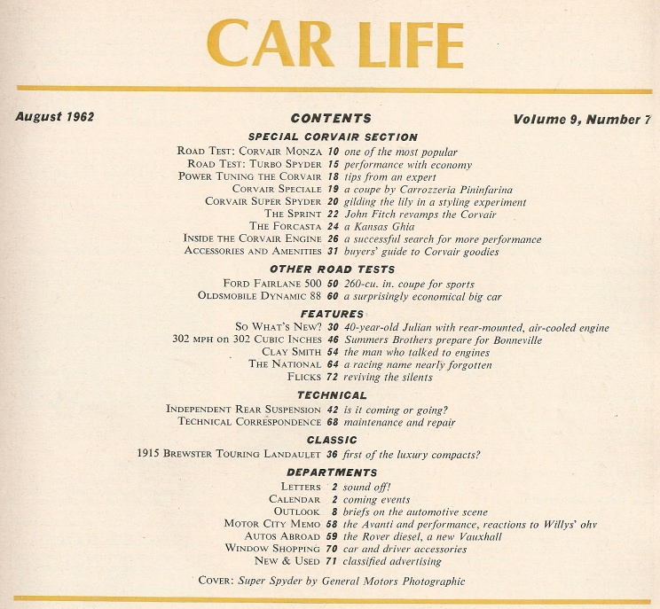 Reviews CAR LIFE 1962 AUG - CORVAIR SPECIAL, SUMMERS BROTHERS, BREWSTER LANDAULET