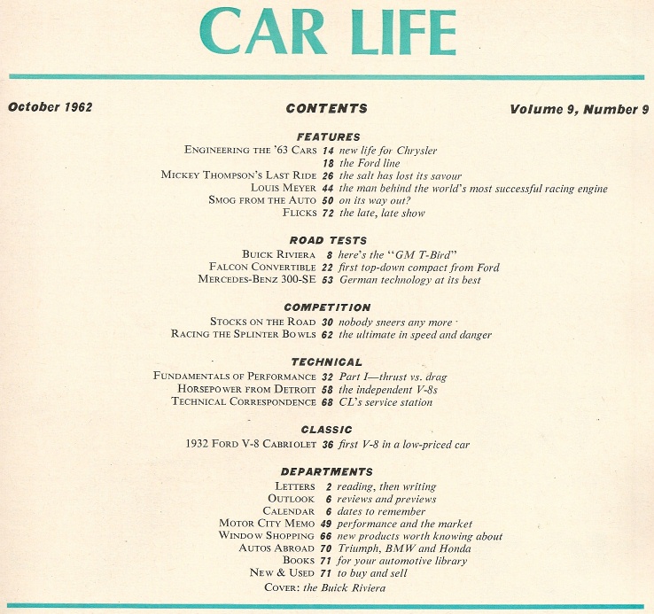 Reviews CAR LIFE 1962 OCT - RIVIERA SPECIAL, FUTURA, CHALLENGER I, MOSPORT, LOUIS MEYER