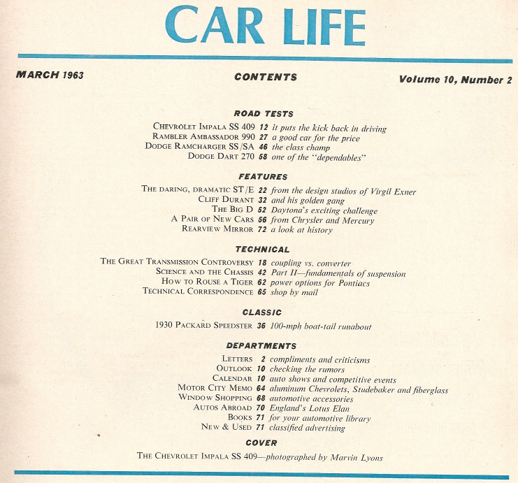 Reviews CAR LIFE 1963 MAR - SS409, RAMCHARGER, DAYTONA 500, PACKARD 734, 421HO
