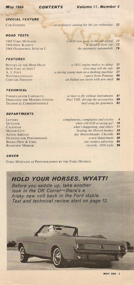 Reviews CAR LIFE 1964 MAY - MUSTANG & JETSTAR TEST, FOYT, STREET HEMI, WINTERNATIONALS