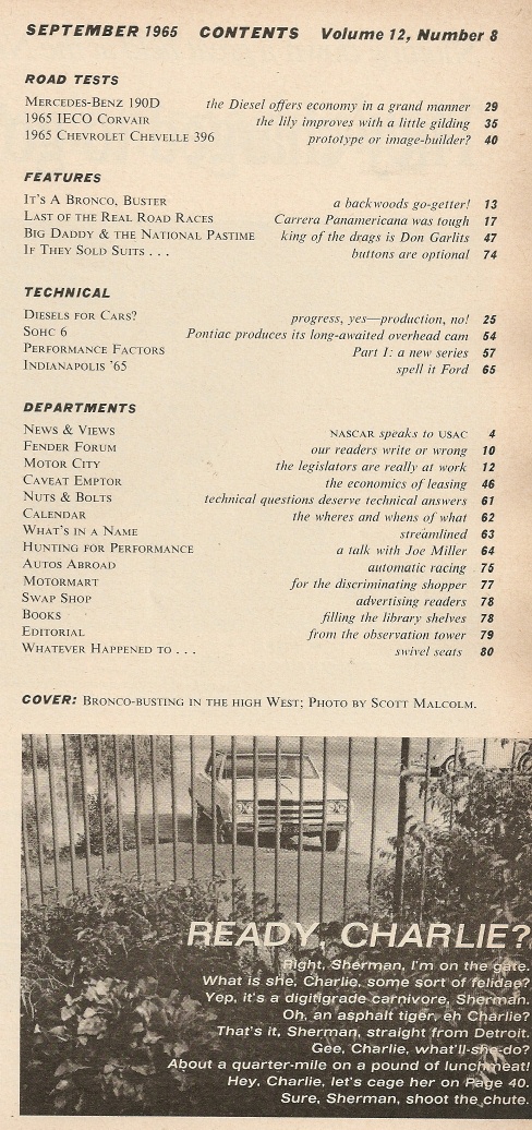 Reviews CAR LIFE 1965 SEPT - CHEVELLE SS396, IECO CORVAIR & BRONCO TEST, GARLITS