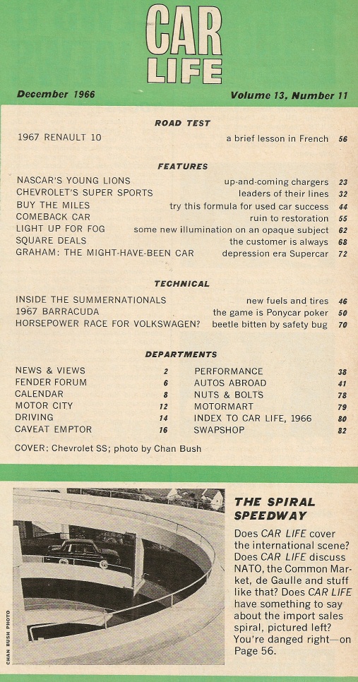 Reviews CAR LIFE 1966 DEC - SS350, 396 & 427, SUMMERNATIONALS, NEW BARRACUDA