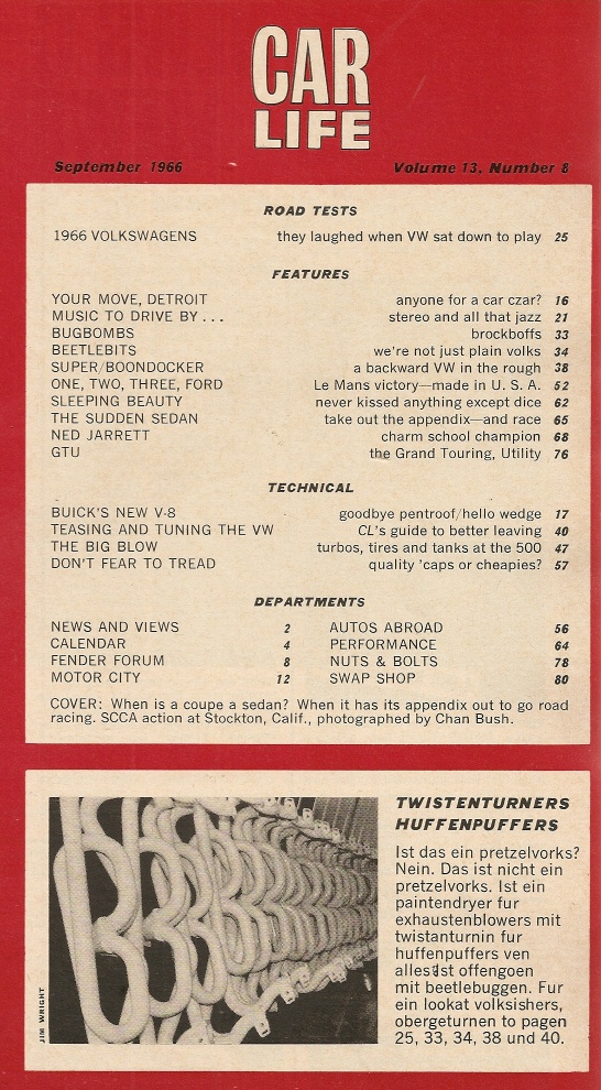 Reviews CAR LIFE 1966 SEPT - VW SPECIAL, NED JARRETT,SCCA SEDAN RACING,FORD WINS LEMANS