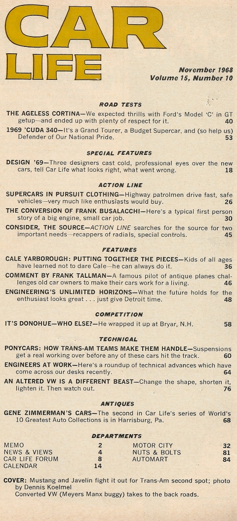 Reviews CAR LIFE 1968 NOV - YARBOROUGH, TRANS AM RACING, DONOHUE, KIT CARS, COP CARS*
