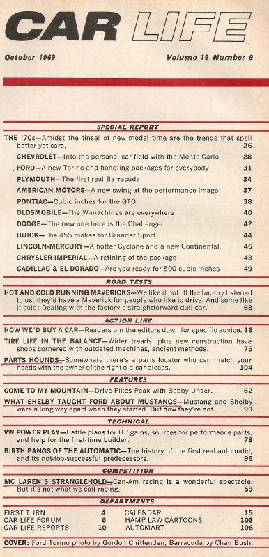 Reviews CAR LIFE 1969 OCT - NEW 70s CARS, GLEN, UNSER'S PEAK, WHAT SHELBY TAUGHT FORD