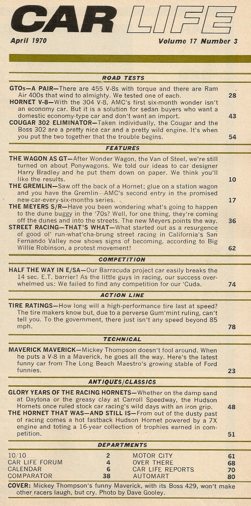 Reviews CAR LIFE 1970 APR - ELIMINATOR,455 GTO V RAM-AR 400,MEYERS S-R,MICKEYS MAVERICK