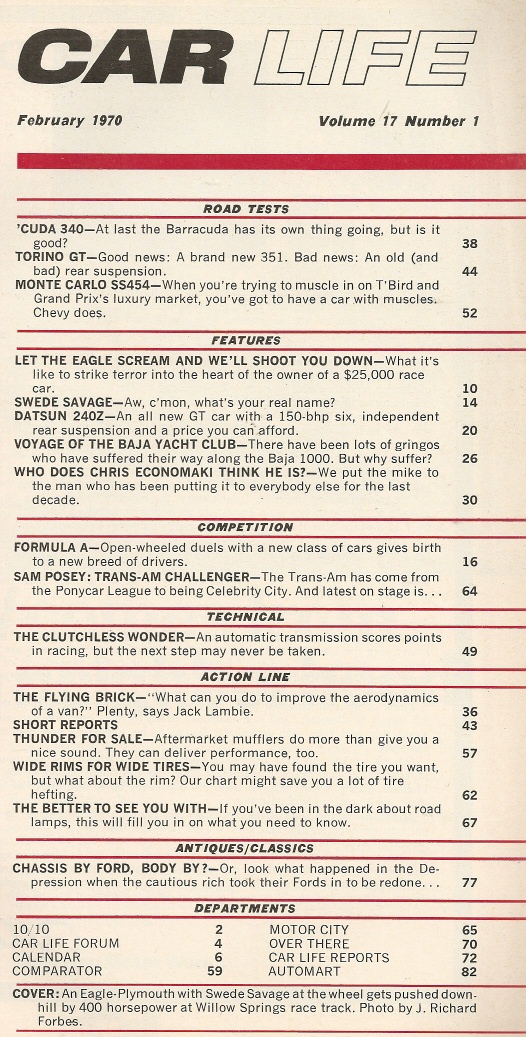 Reviews CAR LIFE 1970 FEB - SS454, 340 CUDA & TORINO GT TESTED,EAGLE, USAC,240Z,POSEY