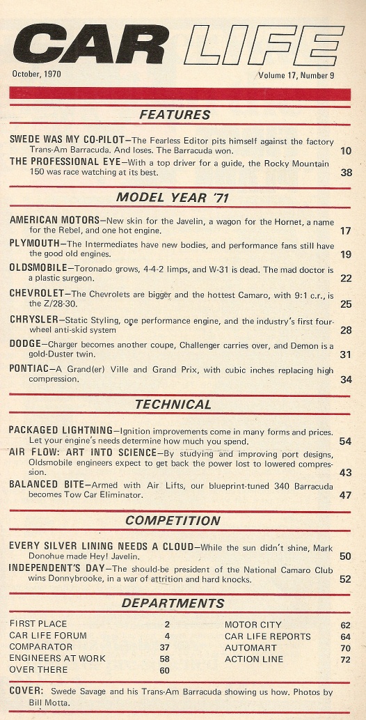 Reviews CAR LIFE 1970 OCT - NEW CARS, SWEDE SAVAGE, TRANS-AM RACING