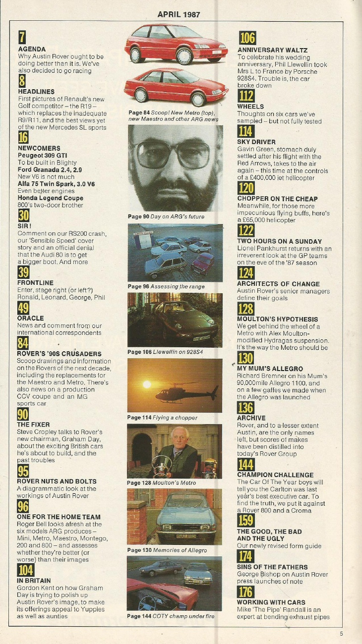 Reviews CAR MAGAZINE 1987 APR - ALFA 75 TWIN SPARK V6, ROVER SPECIAL, PEUGEOT 309 GTI