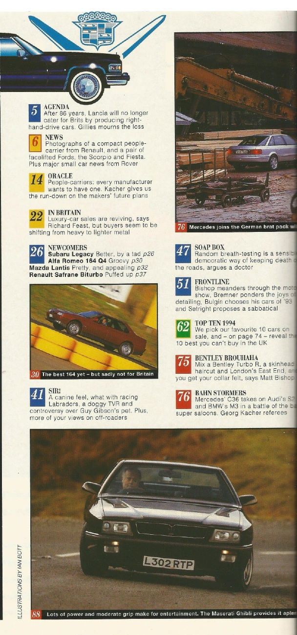 Reviews CAR MAGAZINE 1994 FEB - BEST NEW CARS, M-B C36 v BMW M3 v AUDI S2