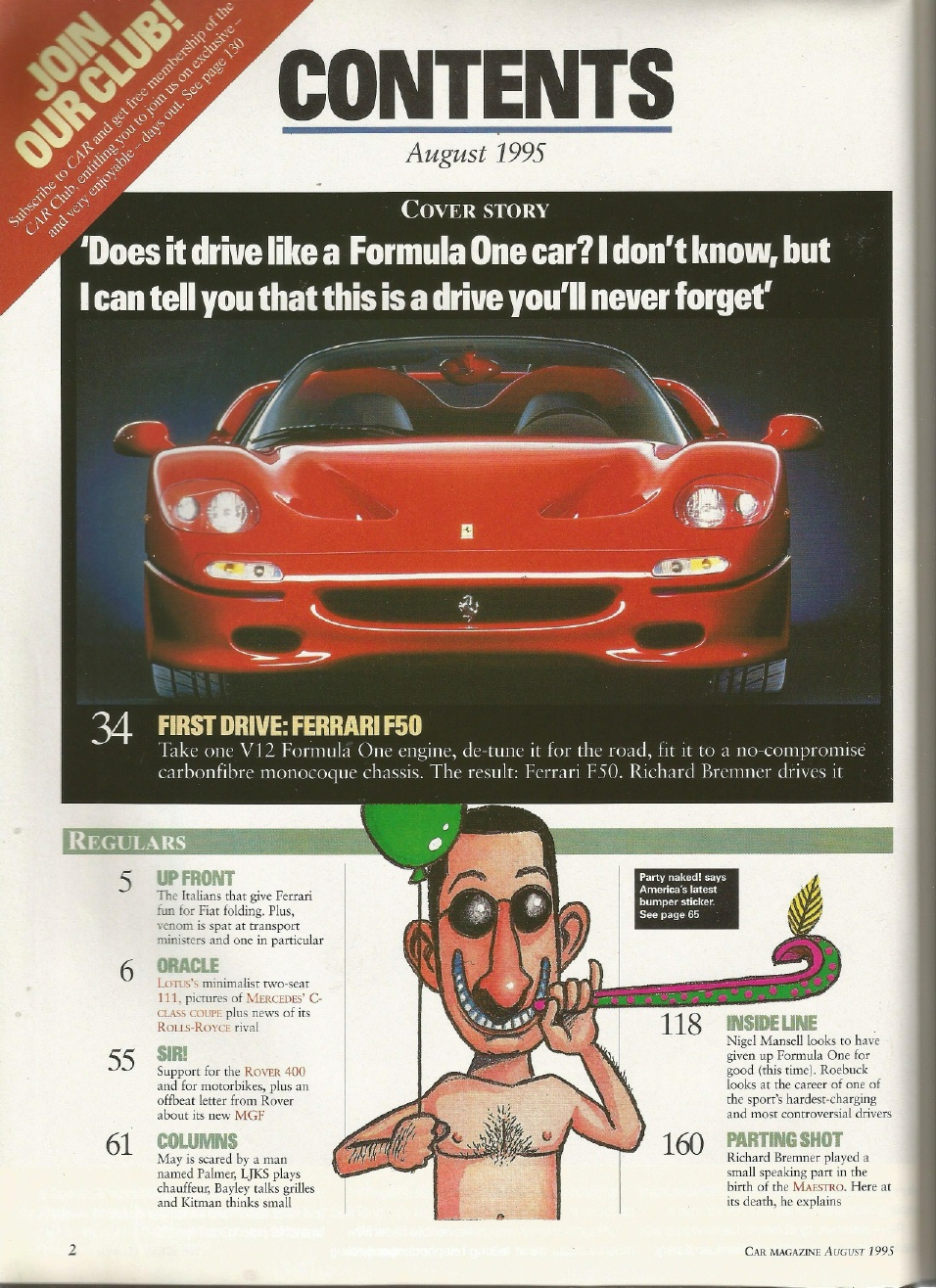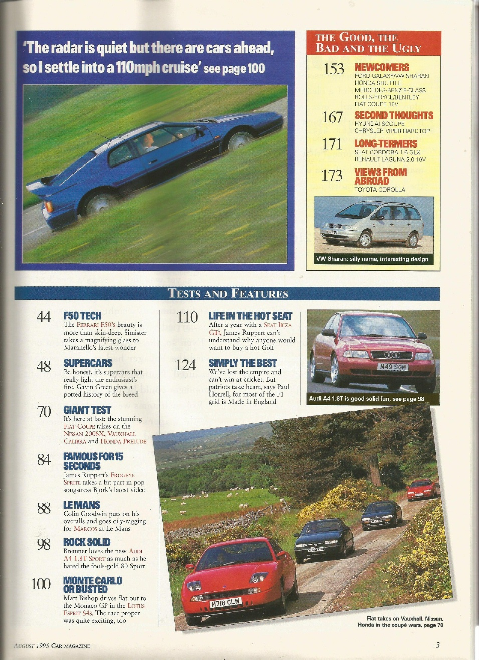 Reviews CAR MAGAZINE 1995 AUG - F50 TEST, PRELUDE v CALIBRA v 200SX v FIAT