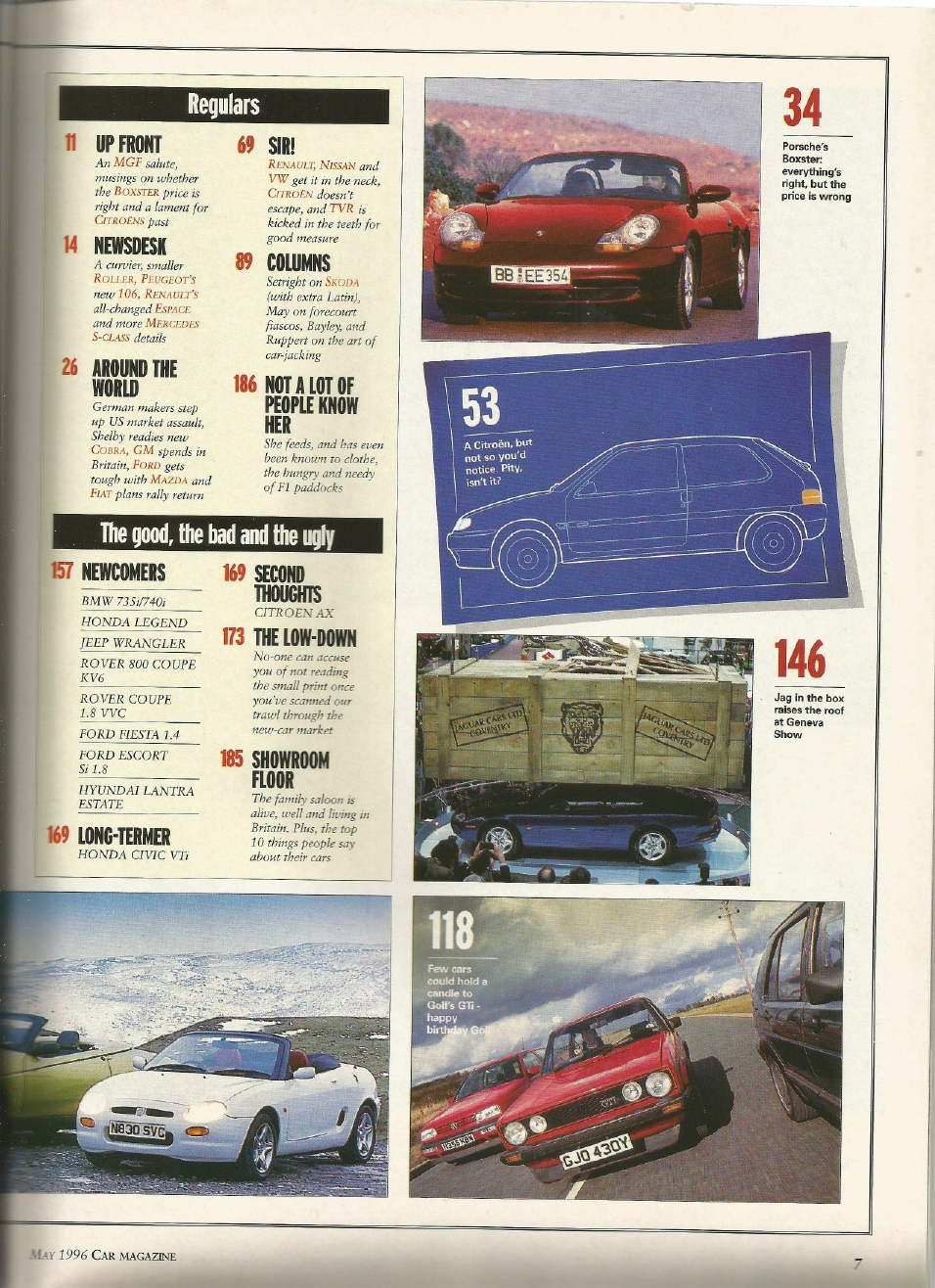 Reviews CAR MAGAZINE 1996 MAY - GOLF GTi, Z3 v ALFA SPIDER v MGF VVC, DIABLO