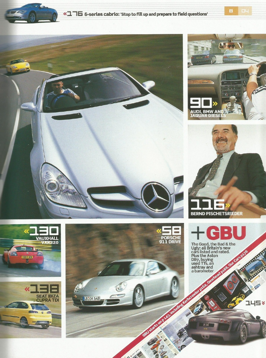 Reviews CAR MAGAZINE 2004 AUG - CARRERA S, SLK350 v BOXSTER, VXR220, AUDIS