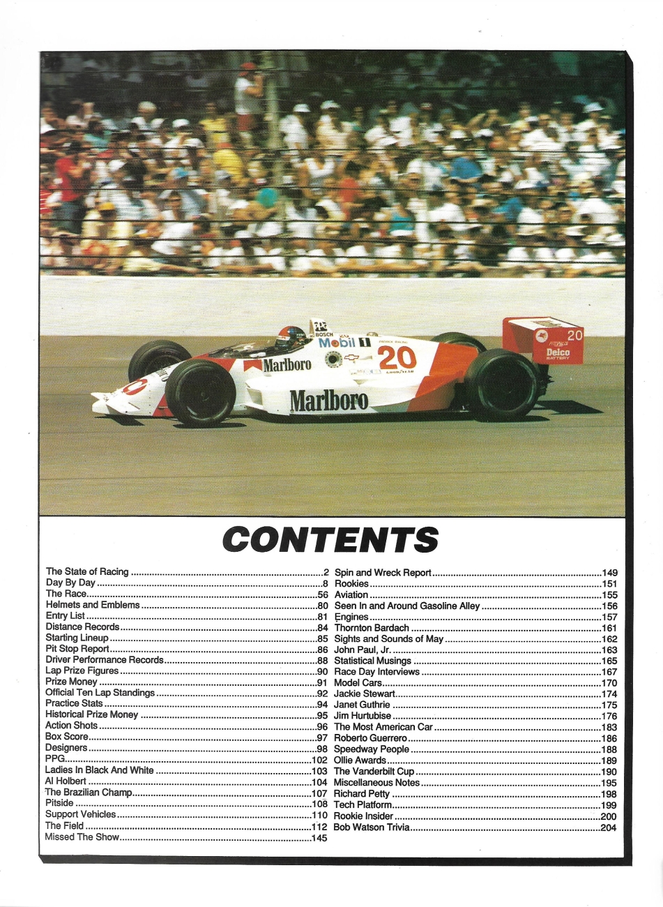 CARL HUNGNESS - THE INDIANAPOLIS 500 YEARBOOK 1989
