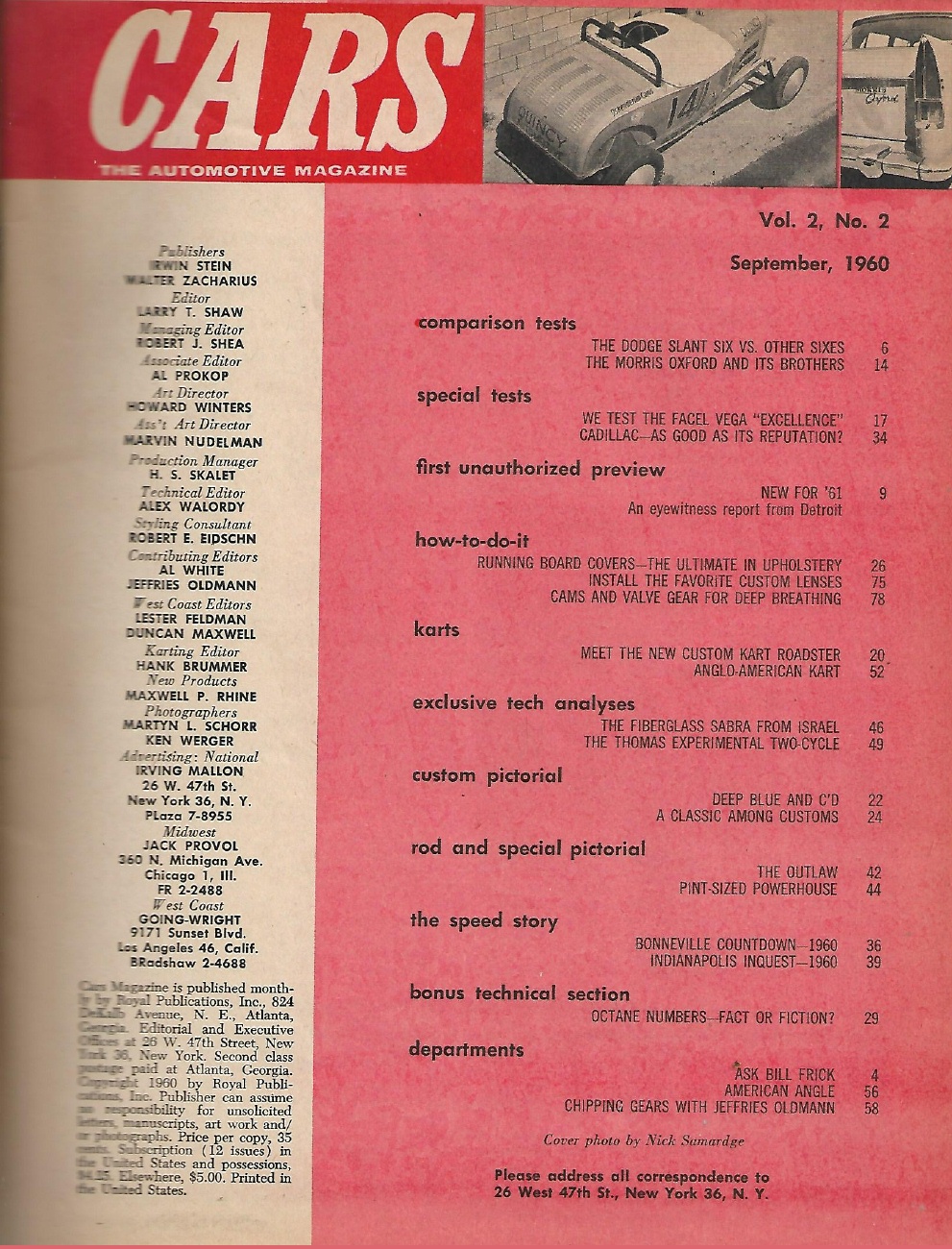 CARS 1960 SEPT - '61 MODELS-FIRST LOOK, ROAD TESTS, KARTS, HOW TO'S, BONNEVILLE*