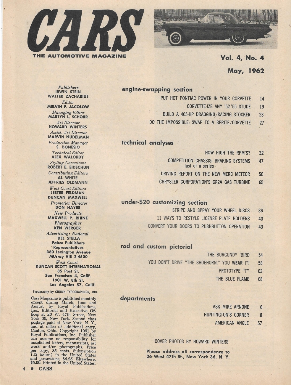 Reviews CARS 1962 MAY - PUSHBUTTON DOORS, MERC METEOR DRIVING REPORT, 4 GREAT SWAPS
