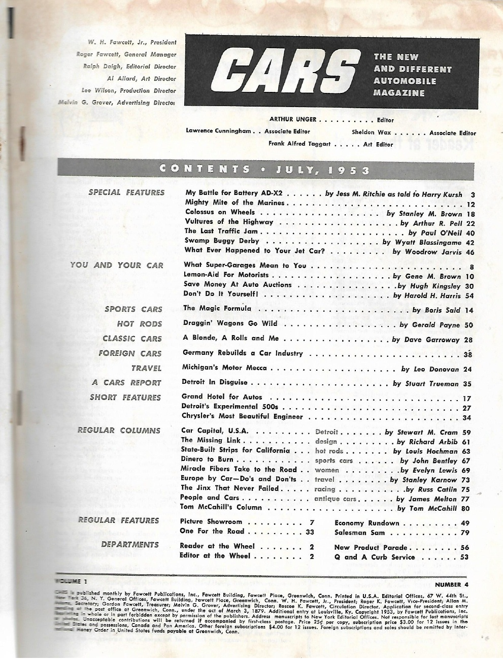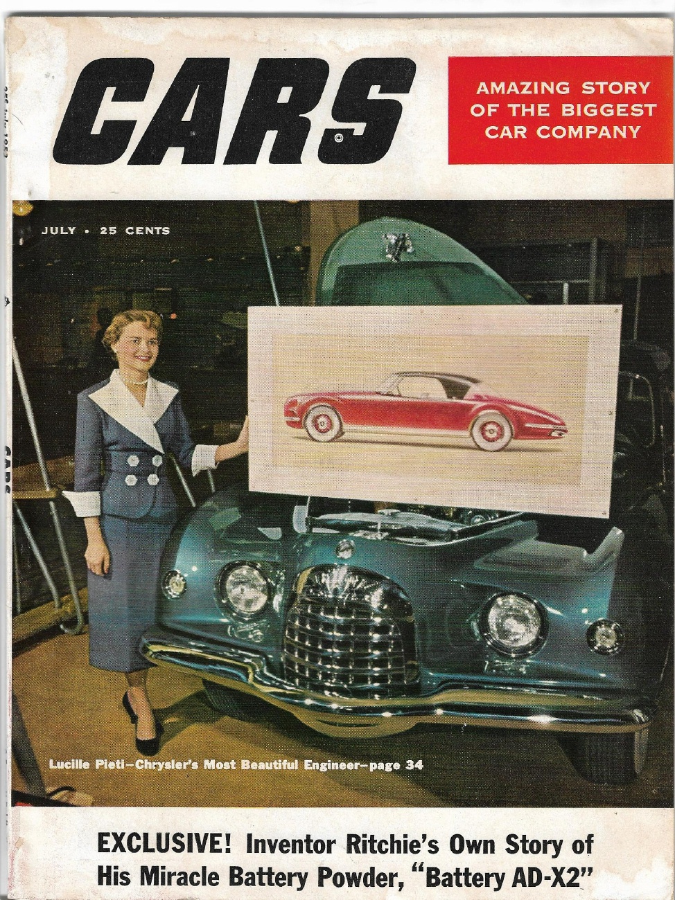 CARS by MECHANIX ILLUSTRATED 1953 JULY - BATTERY AD-X2, CHRYSLER'S L PIETI*