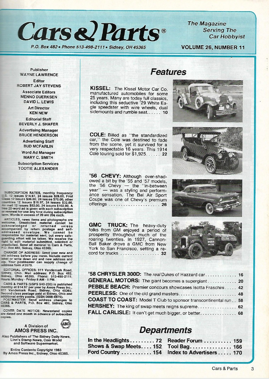 Reviews CARS & PARTS 1983 NOV - '29 KISSEL ,'14 COLE, GMC: TRUCKS, HERSHEY/CARLISLE*