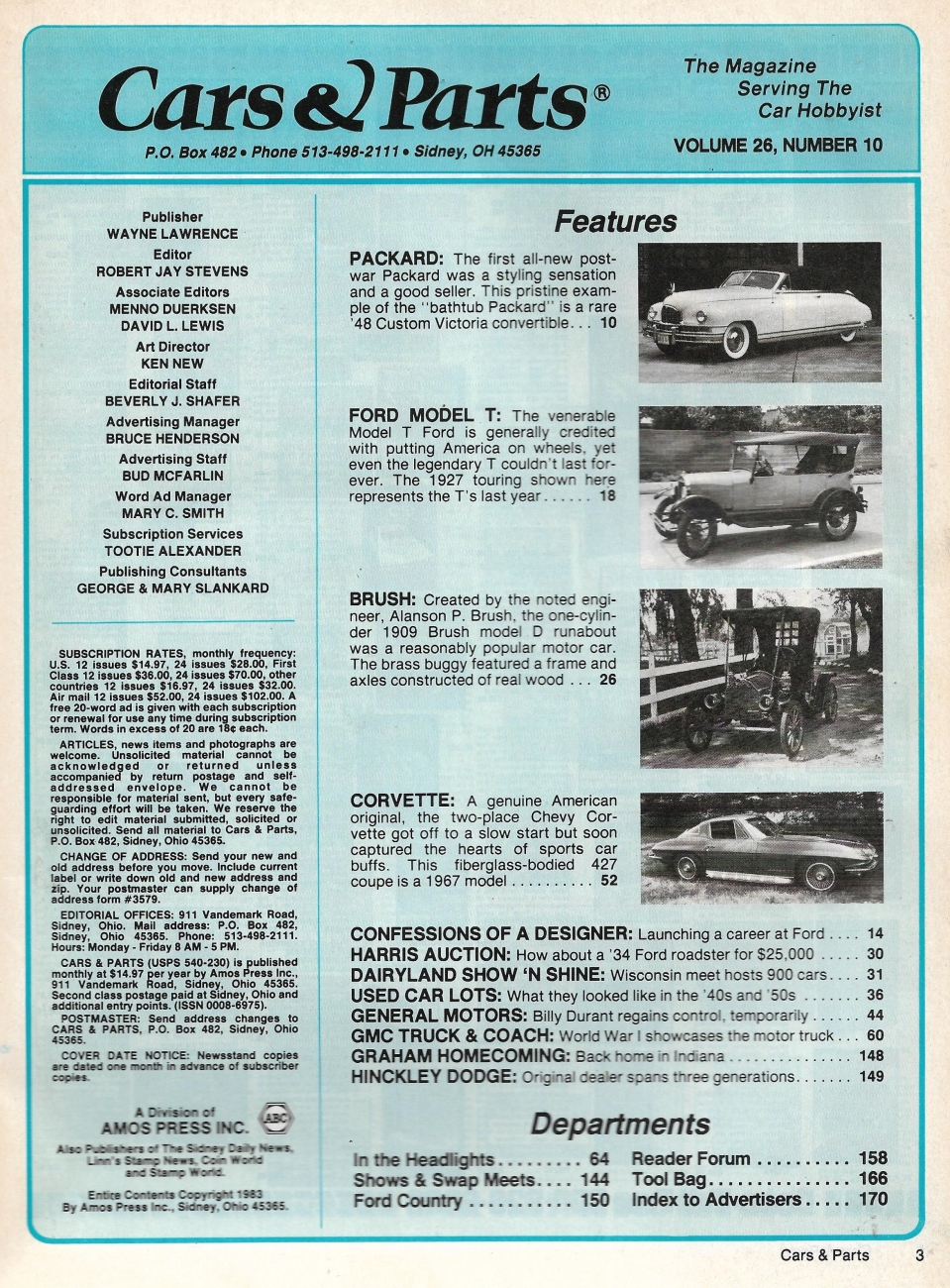 Reviews CARS & PARTS 1983 OCT - CORVETTE, BOB THOMAS, '09 BRUSH MODEL D, '48 PACKARD
