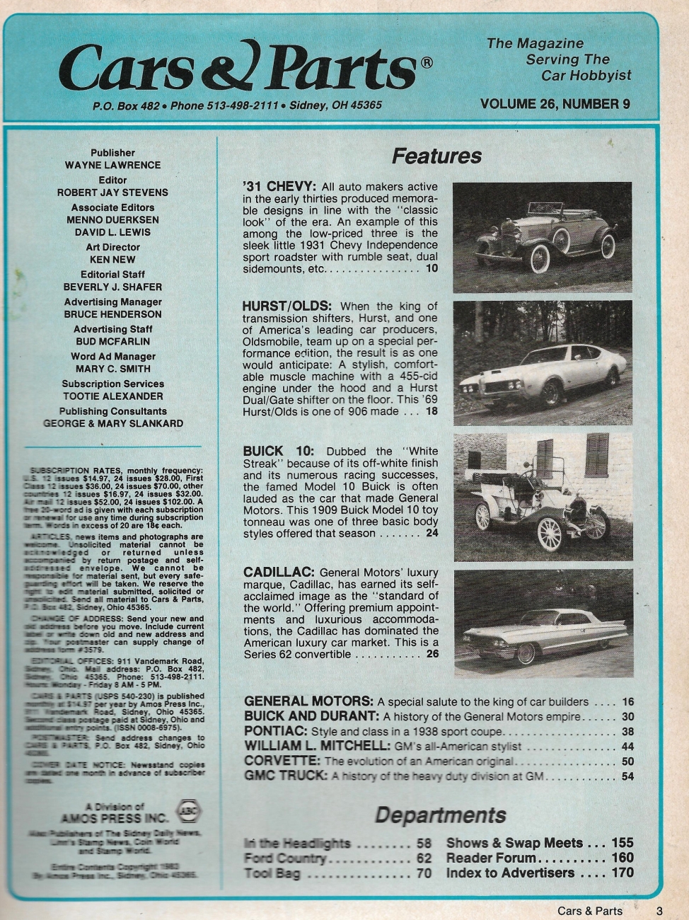 Reviews CARS & PARTS 1983 SEPT - '09 TOY TONNEAU, '62 CADILLAC CONV, '69 HURST/OLDS