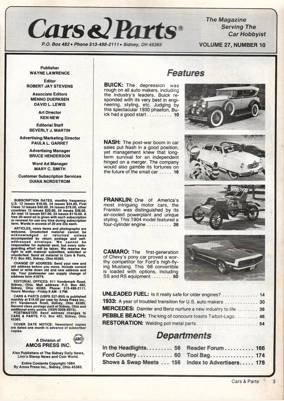 Reviews CARS & PARTS 1984 OCT - '68 CAMARO SS/RS, DAIMLER & BENZ, AMC, '04 FRANKLIN