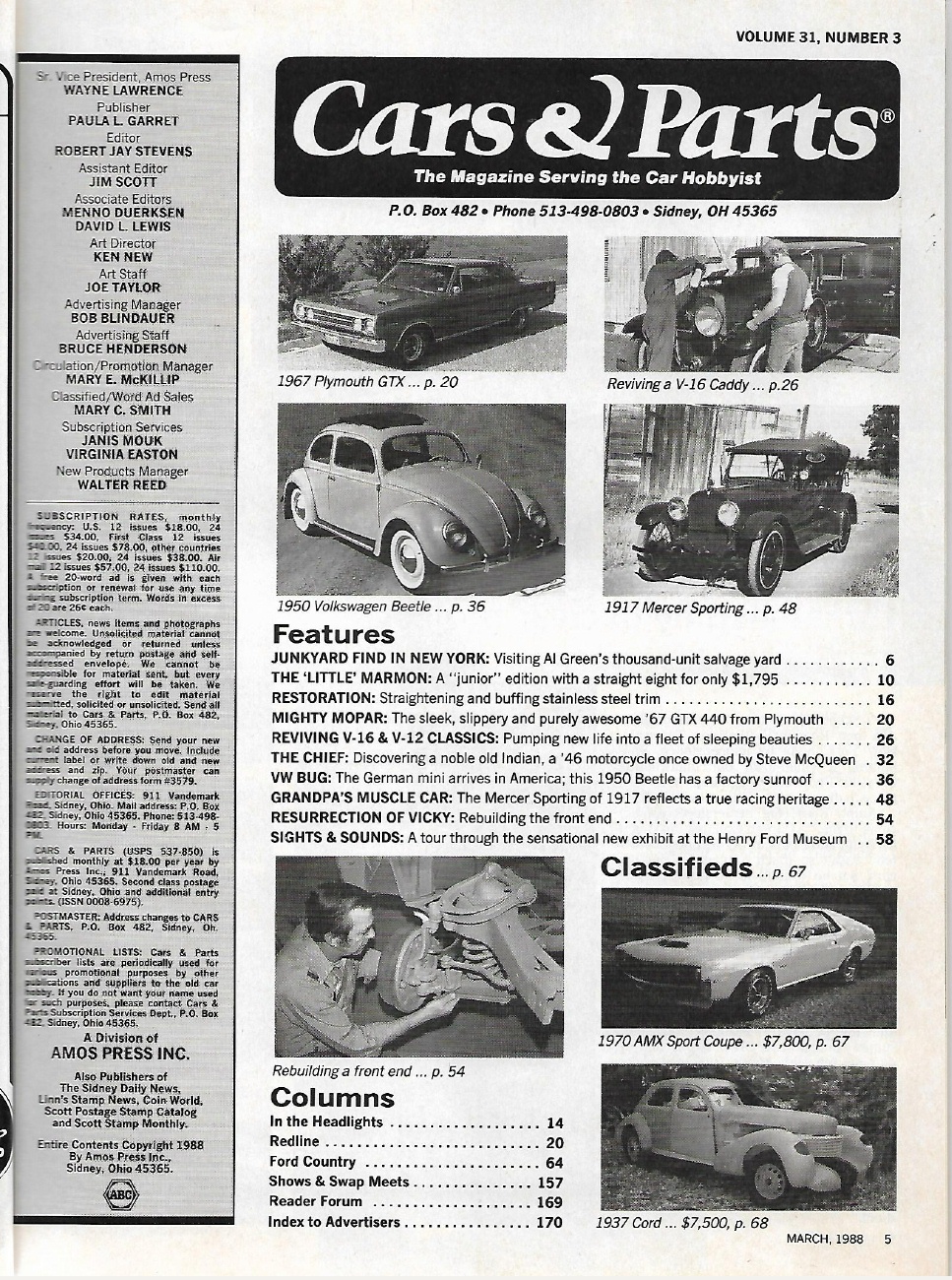 Reviews CARS & PARTS 1988 MAR - '17 MERCEDR SPORTING, V-16, V12 CLASSICS, '50 BEETLE