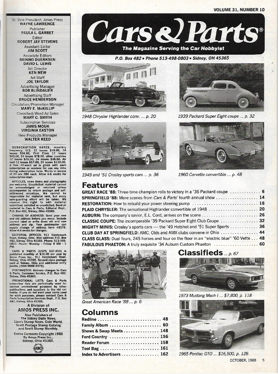 Reviews CARS & PARTS 1988 OCT - '48 CHRYSLER, CROSLEY '49/'51 SPORT, '34 AUBURN PHAETON