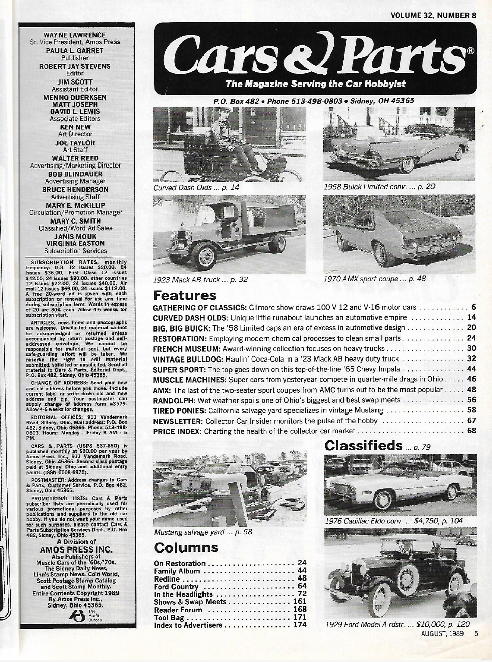 Reviews CARS & PARTS 1989 AUG - '58 BUICK LIMITED CONV, '65 IMPALA SUPER SPORT, GILMORE
