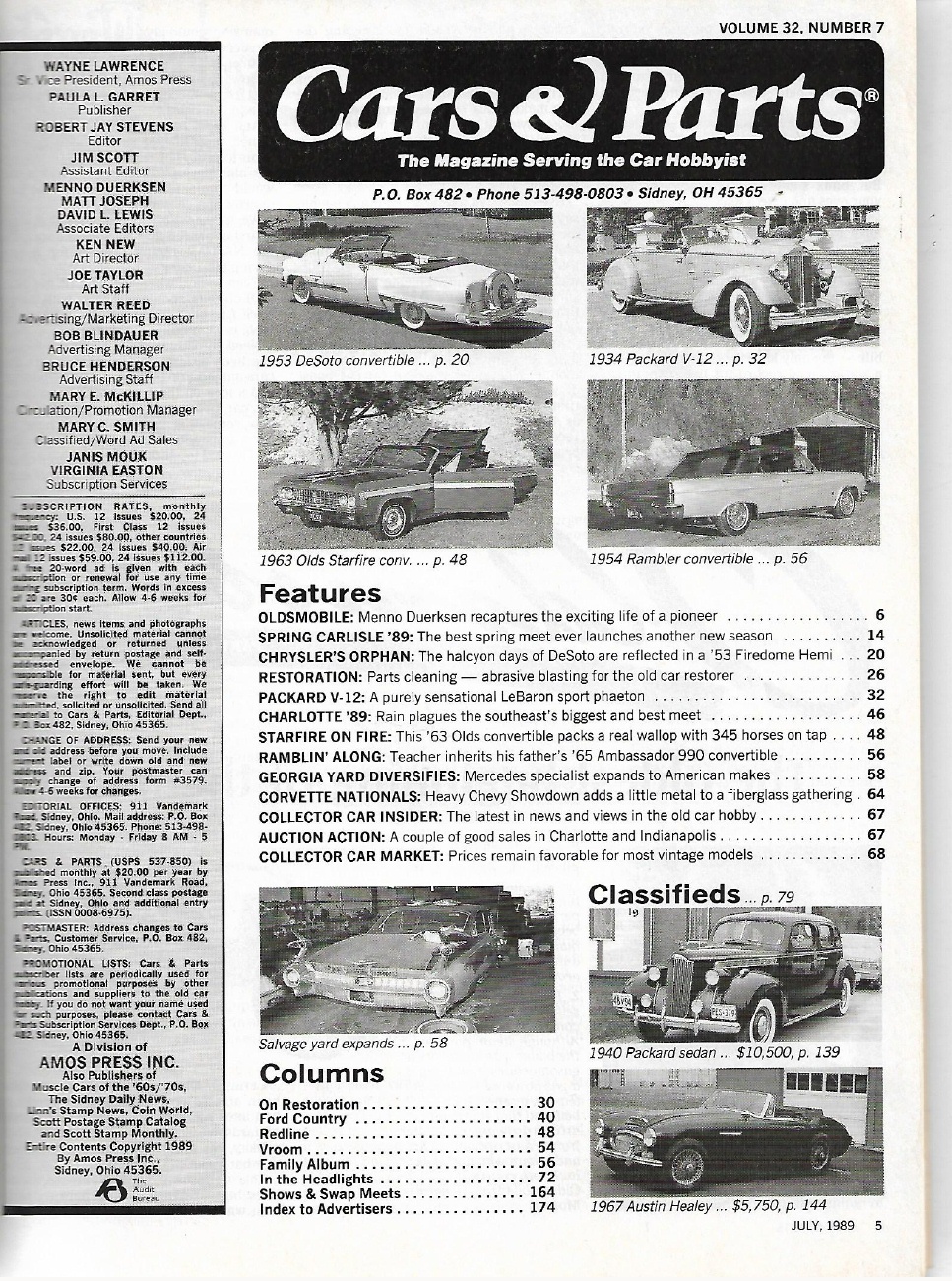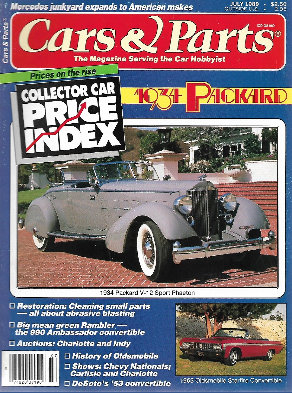 CARS & PARTS 1989 JULY - '53 DESOTO, '34 PACKARD V-12 SPORT PHAETON