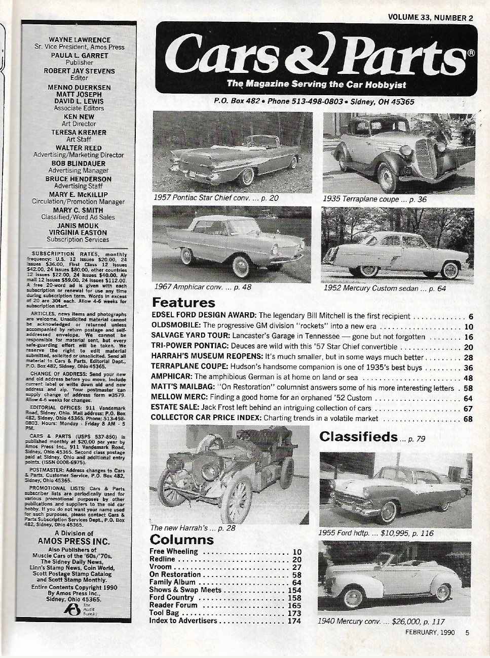 Reviews CARS & PARTS 1990 FEB - '57 PONTIAC STAR CHEIF, '67 AMPHICAR, '35 TERRAPLANE