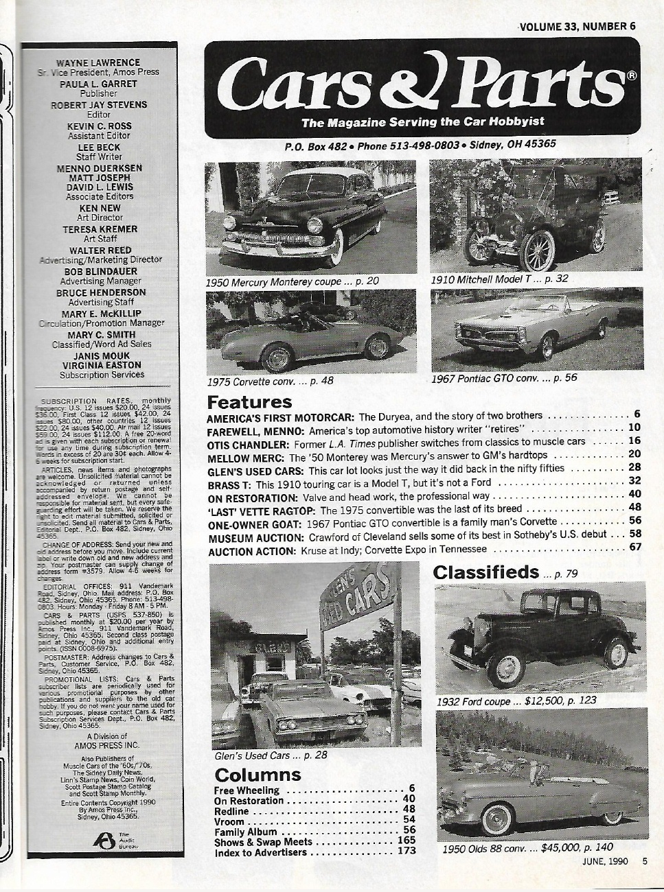 Reviews CARS & PARTS 1990 JUNE - '50 MERCURY MONTEREY, '75 CORVETTE CONV, '10 MITCHELL