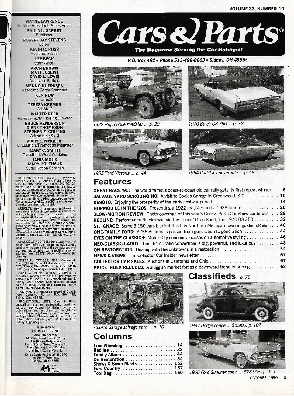 Reviews CARS & PARTS 1990 OCT - BUICK GS 350, '64 CADILLAC DE VILLE, '23 HUMPMOBILE