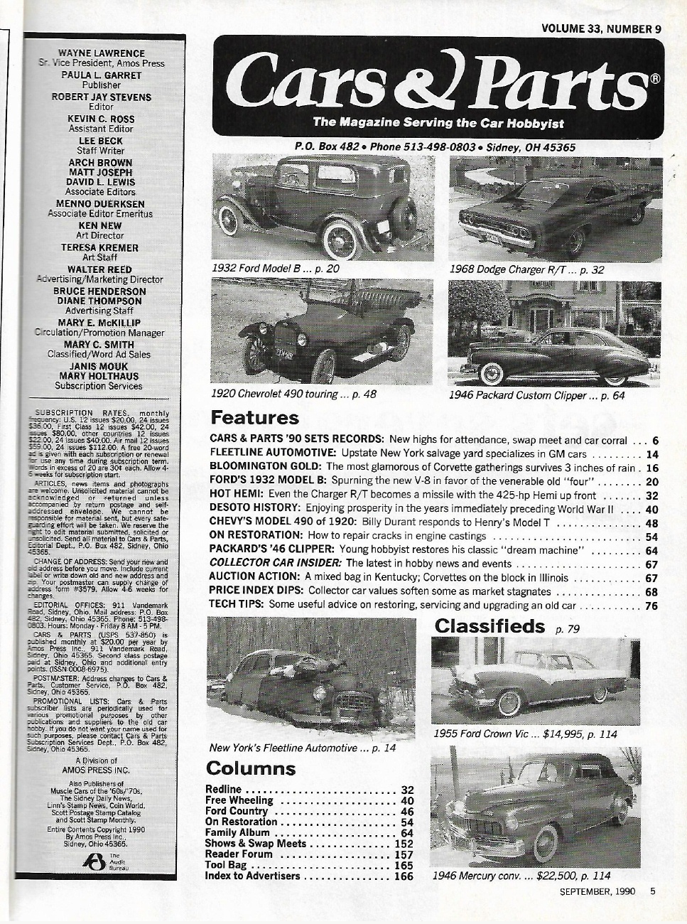 Reviews CARS & PARTS 1990 SEPT - '68 DODGE CHARGER R/T HEMI, '46 PACKARD CLIPPER