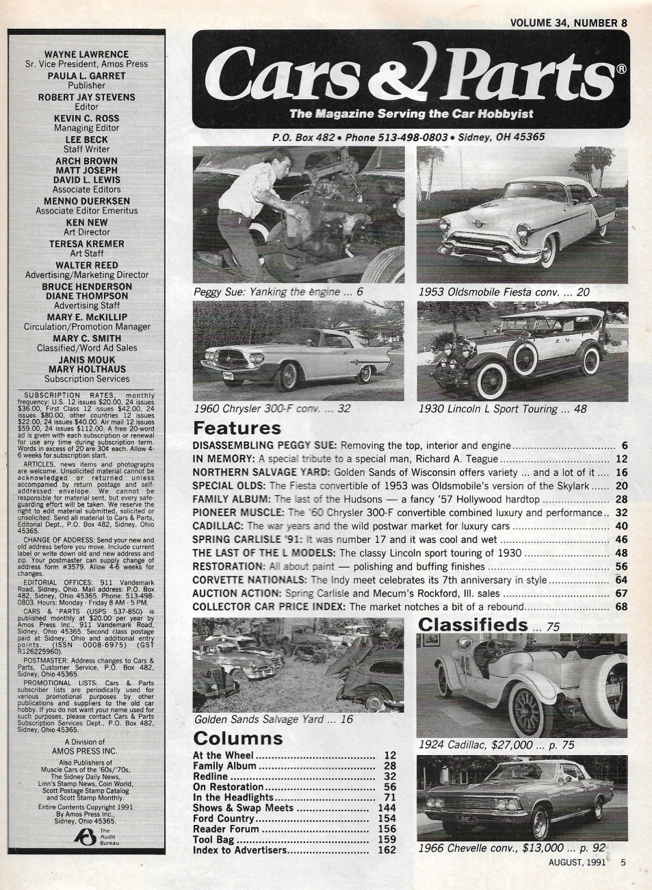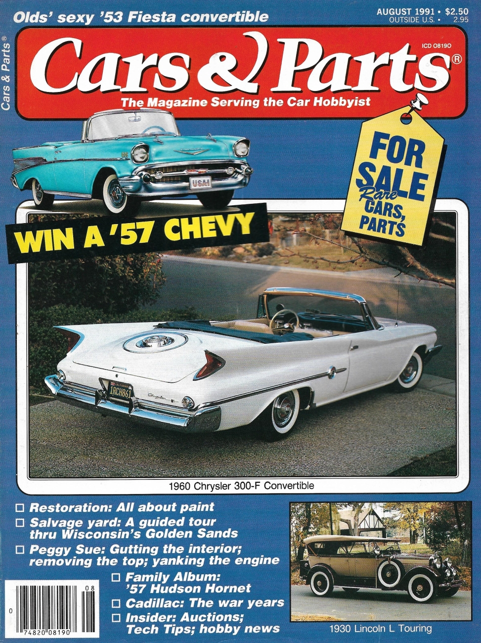 Reviews CARS & PARTS 1991 AUG - '60 CHRYSLER 300-F CONV, '30 LINCOLN L, '57 HORNET